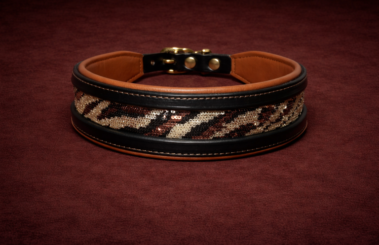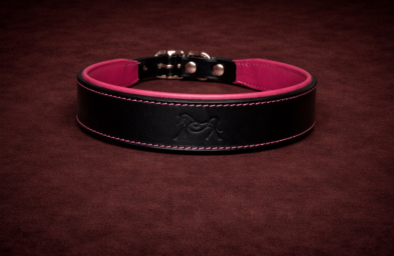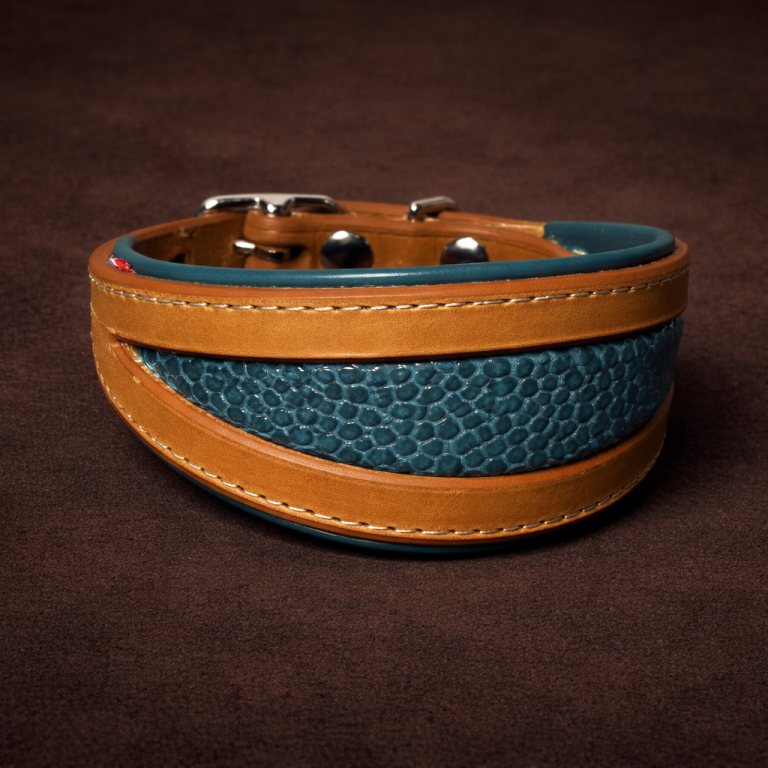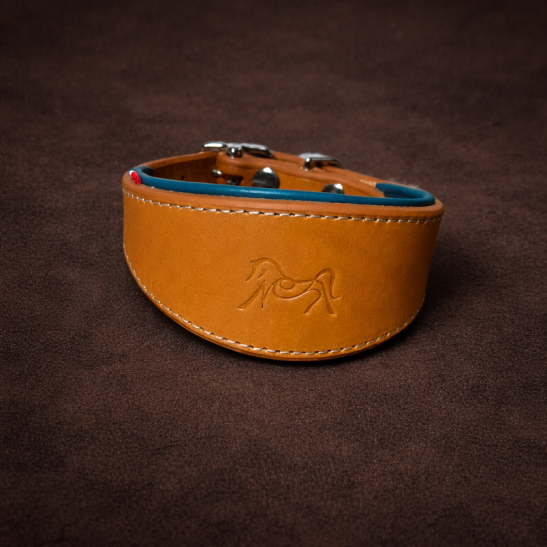 Collier spécialement adapté aux lévriers, avec une forme élargie et ergonomique caractéristique.